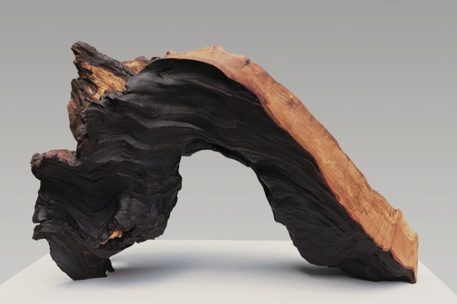 그의 작업실은 켜켜이 쌓여있는 크고 작은 고목들과 연장, 도구들로 마치 어느 공장 풍경을 보는 듯하고 때로는 위험해 보이기도 합니다. 시골에서 당산재를 올릴 때 몸과 마음가짐을 바로 하고 새끼줄을 꼬듯이, 나무의 모양과 상태를 살피며 그에 맞는 작품을 구상하여 깎고 태우고 다듬는 모습은 흡사 그 나무에 영원한 생명을 불어넣으려는 것 같습니다.